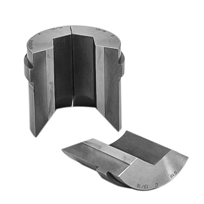 Maximum bearing surface between the spindle and head angle. Because there are no holes or slots in the head angle of the collet, uneven wear of the spindle will not result from continuous use. There are no threaded holes in the collet to be stripped or damaged.